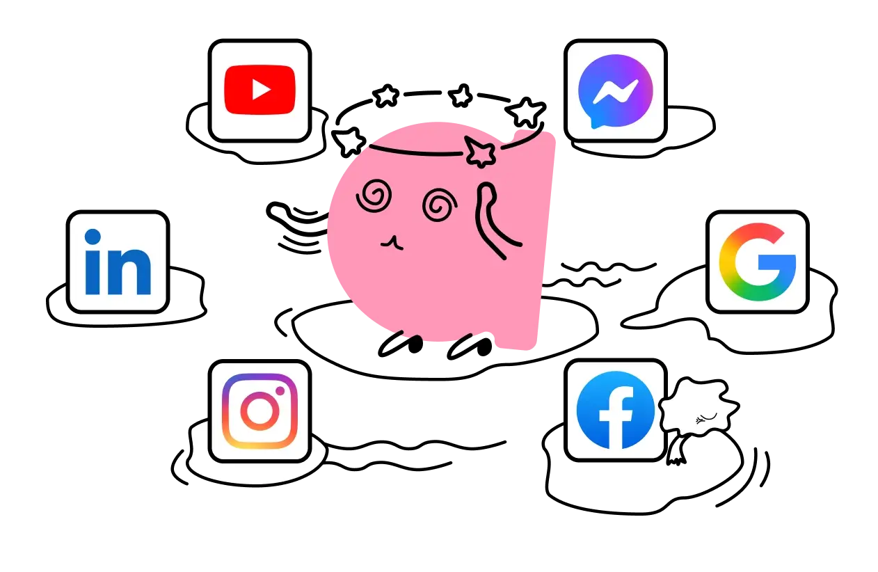 频繁切换 VPN,账号容易关联封禁。Facebook、LinkedIn、官网各自为战,登录繁琐,运营效率极低。